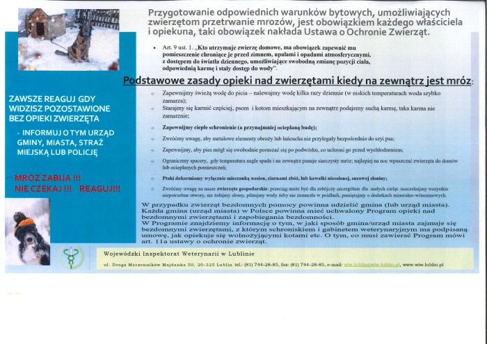 Podstawowe zasady opieki nad zwierzętami kiedy na zewnątrz jest mróz.