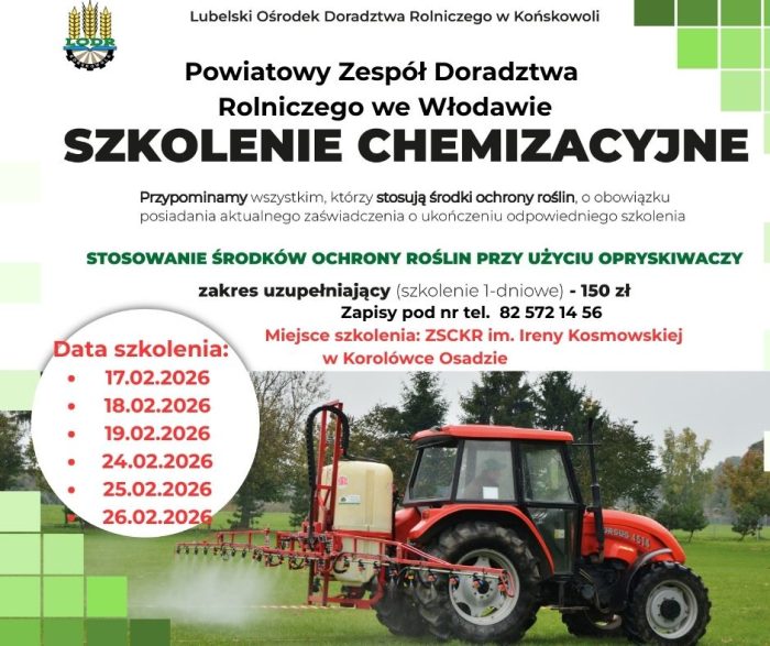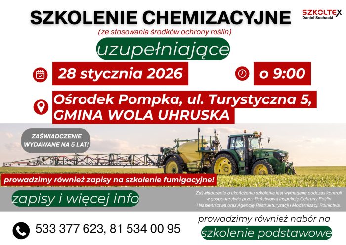 Informujemy, że w najbliższym czasie będzie można skorzystać z oferty szkoleń chemizacyjnych.