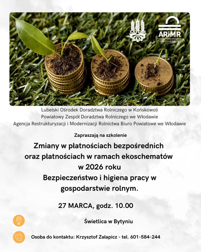 Zmiany w płatnościach bezpośrednich oraz płatnościach w ramach ekoschematów w 2026 roku. Bezpieczeństwo i higiena pracy w gospodarstwie rolnym.