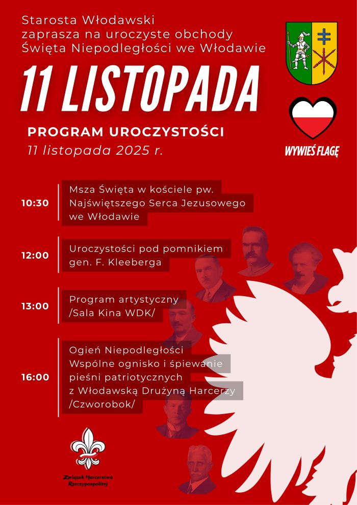 Starosta Włodawski zaprasza na uroczyste obchody Święta Niepodległości we Włodawie.